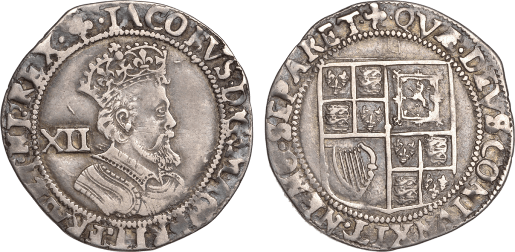 This note continues the die studies of James I shillings, working backwards through the mintmarks of the second issue. Here the mintmark Trefoil is presented – issued 28th April 1613 to 20th October 1613. Though a scarce mintmark, six different obverse legends have been found (so far). With just one die pair duplicate the statistics are poor, suggesting there are many more dies to be found.