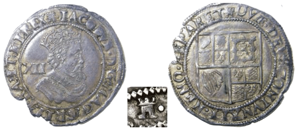 This note continues the die studies of James I shillings, working backwards through the mintmarks of the second issue. Here the mintmark Tower is presented – issued 22nd May 1612 to 28th April 1613. With just 21 specimens found struck from 12 obverse and 11 reverse dies, including four legend variations, the coverage is 0.71 and there are likely to be a total of around 21 obverse and 20 reverse dies.