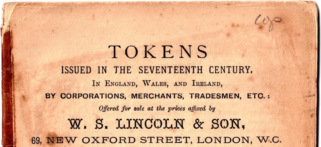 The chance find of an old sales catalogue, from W.S. Lincoln and Son, dedicated to 17th century tokens, and listing 1006 pieces has resulted in this short note. The list must have been published sometime between 1889 (Williamson published) and 1932 (Lincoln business failed).