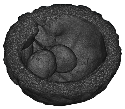 A clay envelope dating from 5500-4500 BC is probed using 3-D X-ray tomography to allow the tokens inside to be imaged, along with the maker’s thumbprint in the clay.