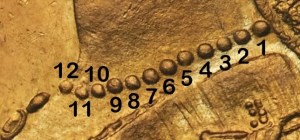 I am of the opinion that the thirteenth pearl, which is partly hidden by the twelfth pearl, appeared on both matrices but was flatter and had less detail. Definition was lost when transferred to the working dies, and this when combined with the quality of strike and die wear could result in the appearance of their only being 12 pearls. Have a look at one of my coins on the Heritage Coin Auction site, a 1890 half sovereign from a Type A matrix sold on 6th Feb 2015 NGC 3889914-012 AU58 you can see what looks like a small pimple this is not a pimple but a small remaining part of the original design.